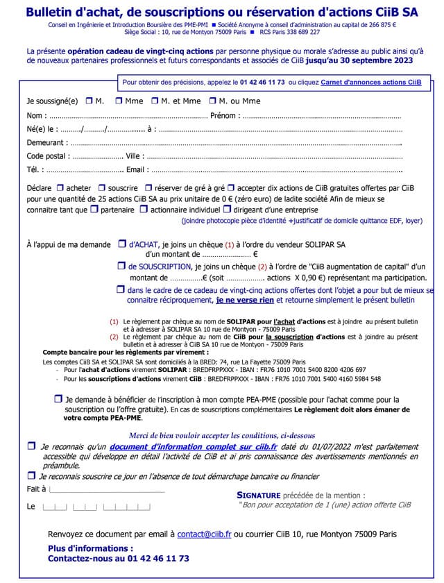 Inédit : CiiB vous offre vingt-cinq actions CiiB