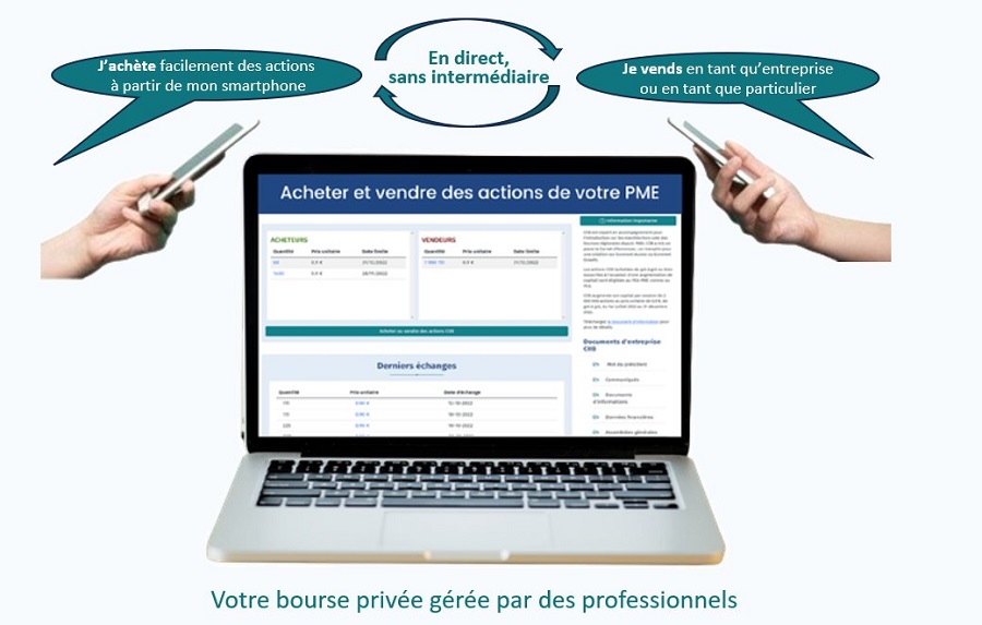 - auprès de l’épargne de proximité et du public, puis inscrire les actions sur votre bourse privée